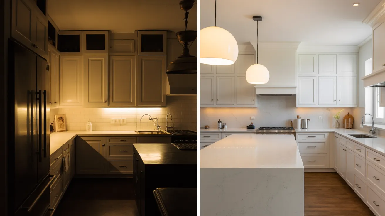 We specify cabinetry with thoughtful storage: deep drawers, pull-out pantries, tray dividers, and concealed recycling. We choose countertops and backsplashes for performance and easy maintenance. Our lighting upgrades combine task, ambient, and accent light—statement pendants, under-cabinet LEDs, and dimmable recessed cans—to elevate ambiance and practicality.
